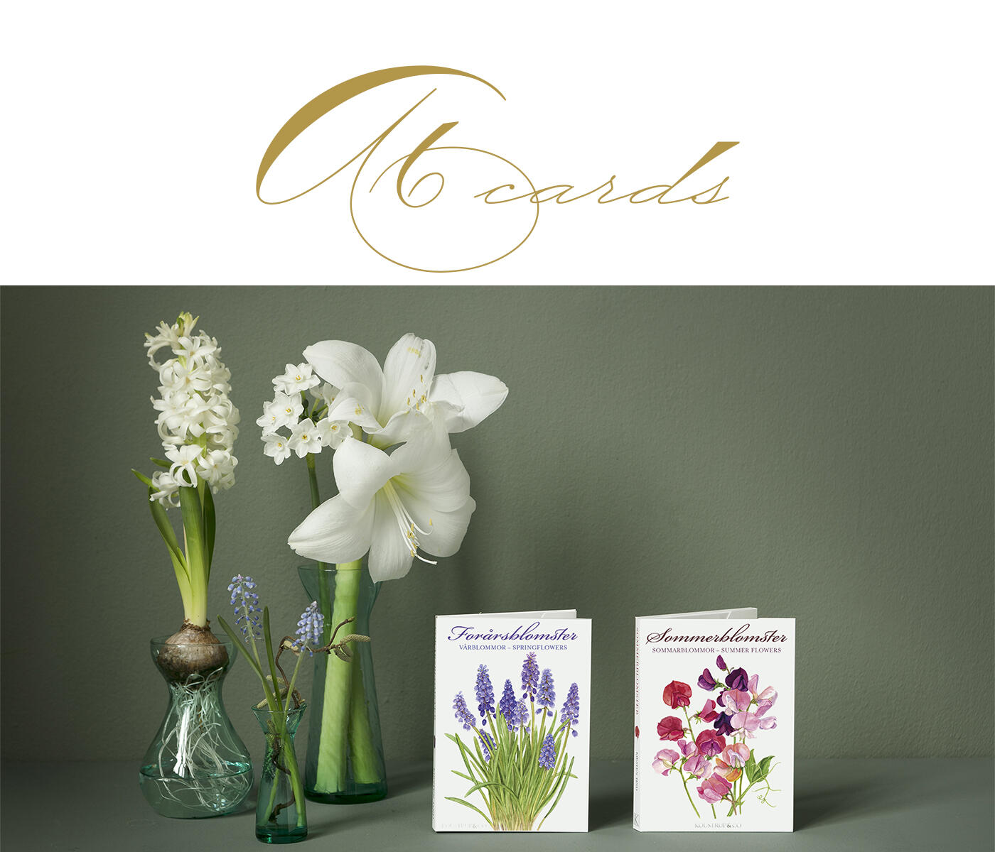 We are known for our large selection of cards with many different motifs. Here you can find lots of flower cards but also motifs of plants, museumscards, mushrooms, ornaments, animals, birds, H.C.A fairy tales, trees, spring flowers, nature and a whole lot more.