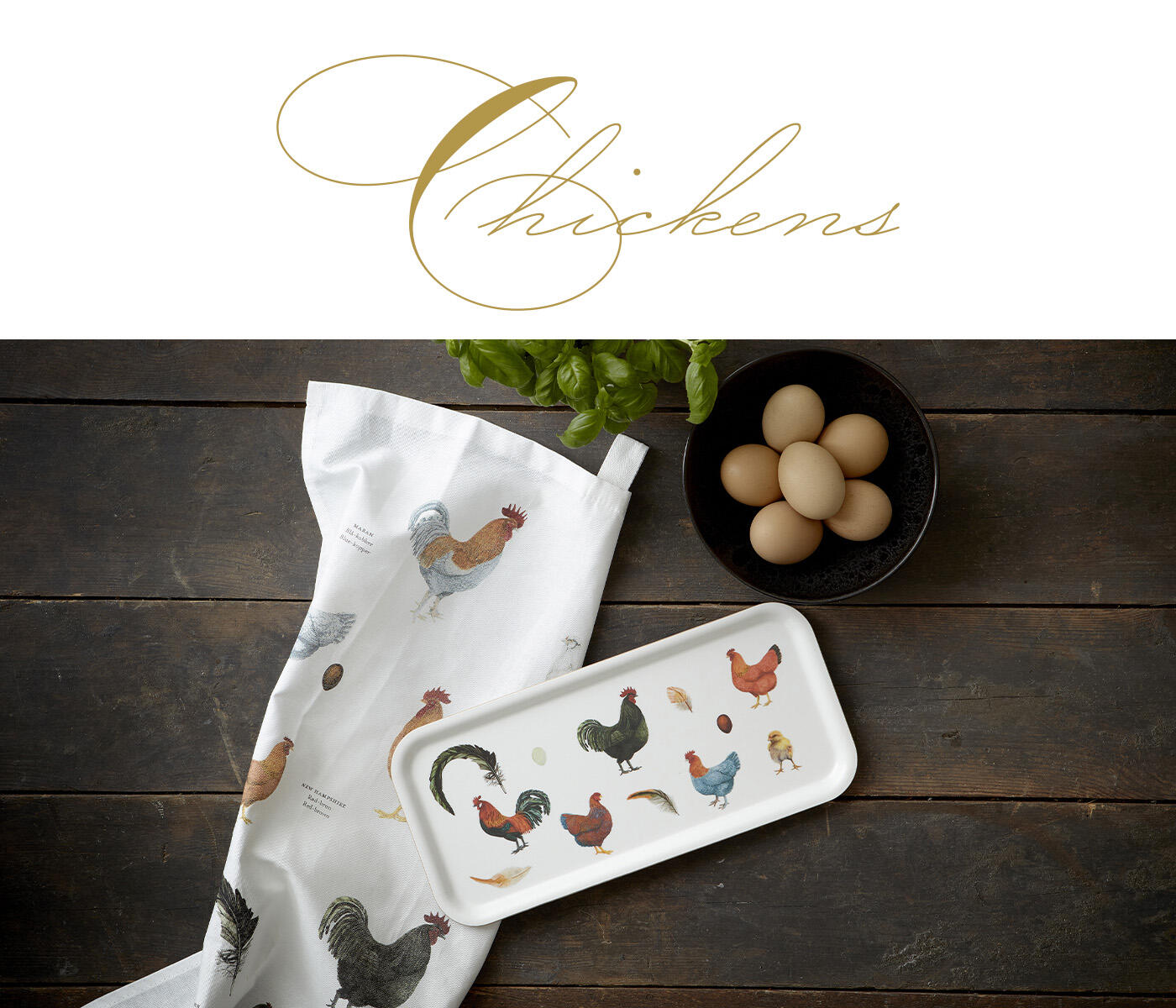 A lovely collection featuring motifs of colorful hens, roosters, chicks, eggs, and feathers.
