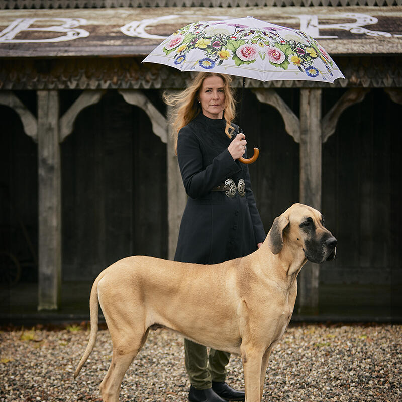 The umbrella is equipped with a solid and ergonomic wooden handle. It features an automatic opening mechanism, activated by simply pressing a button located just above the handle. The umbrella’s shaft and ribs are made of strong metal, making it resistant to wind. The canopy is made of recycled polyester, which is strong, durable, and water-repellent.
