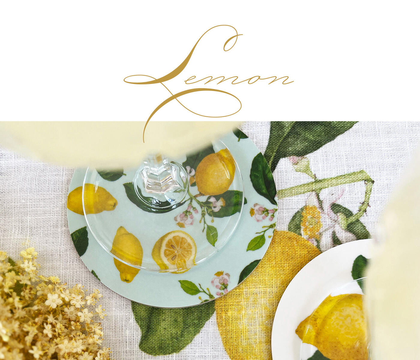 Find Your Favorite in the Lemon Collection Create a unique style and interior with products from our lemon theme. Explore the collection and find everything from textiles and trays to beautiful prints – all designed to give your home a touch of the Mediterranean.