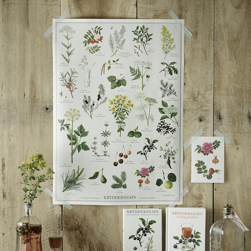 On this A2 poster Susanne Weitemeyer has illustrated 27 different ingredients for a good homemade spiced schnapps.