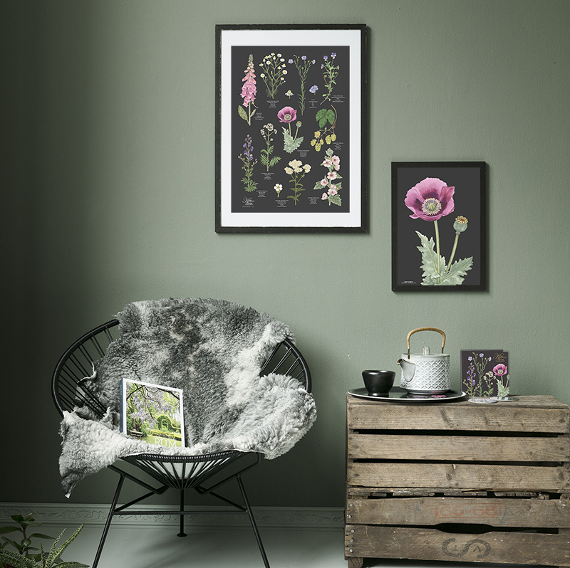 Square card set featuring various monastery-garden fauna illustrated by Kirsten Tind, an experienced botanical illustrator whose drawings appear in many botanical works.