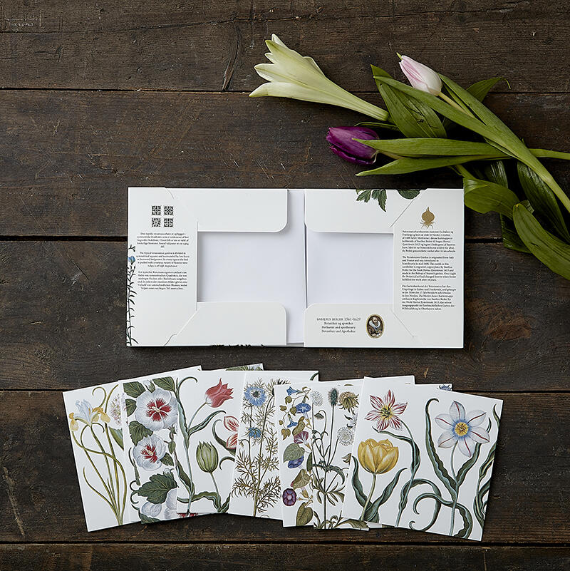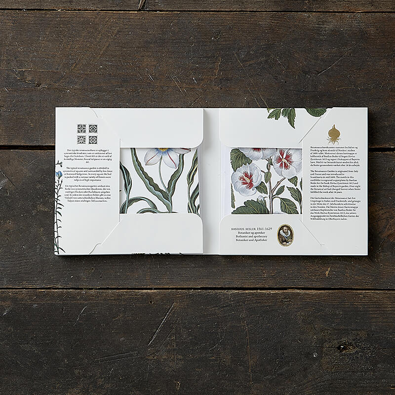 Square card set with motifs from the Renaissance illustrated by the German-born Basilius Besler, an experienced botanist and apothecary.